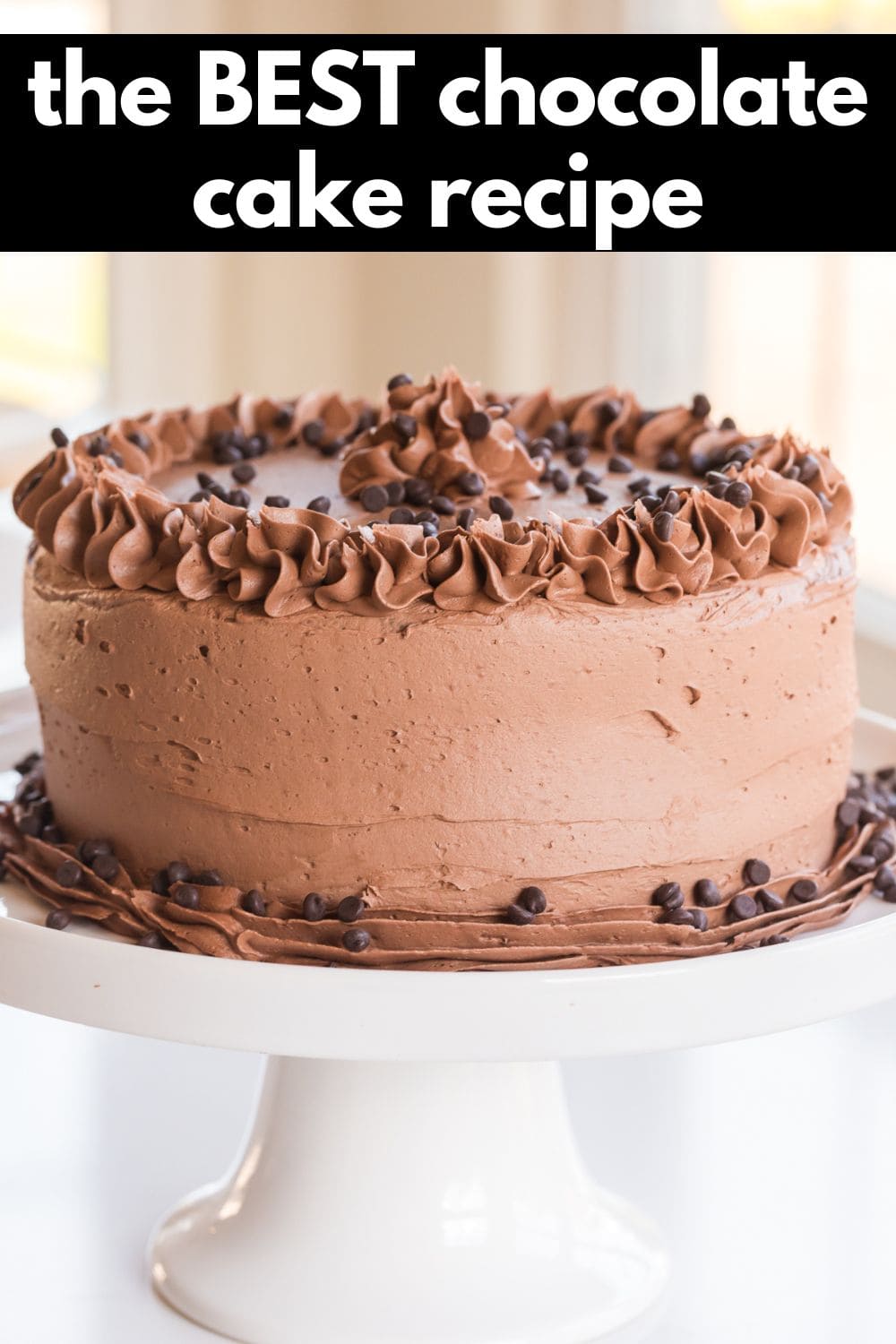 This is the best chocolate cake recipe, so moist and filled with the perfect amount of chocolate! We make our chocolate cake recipe from scratch along with a homemade chocolate buttercream.