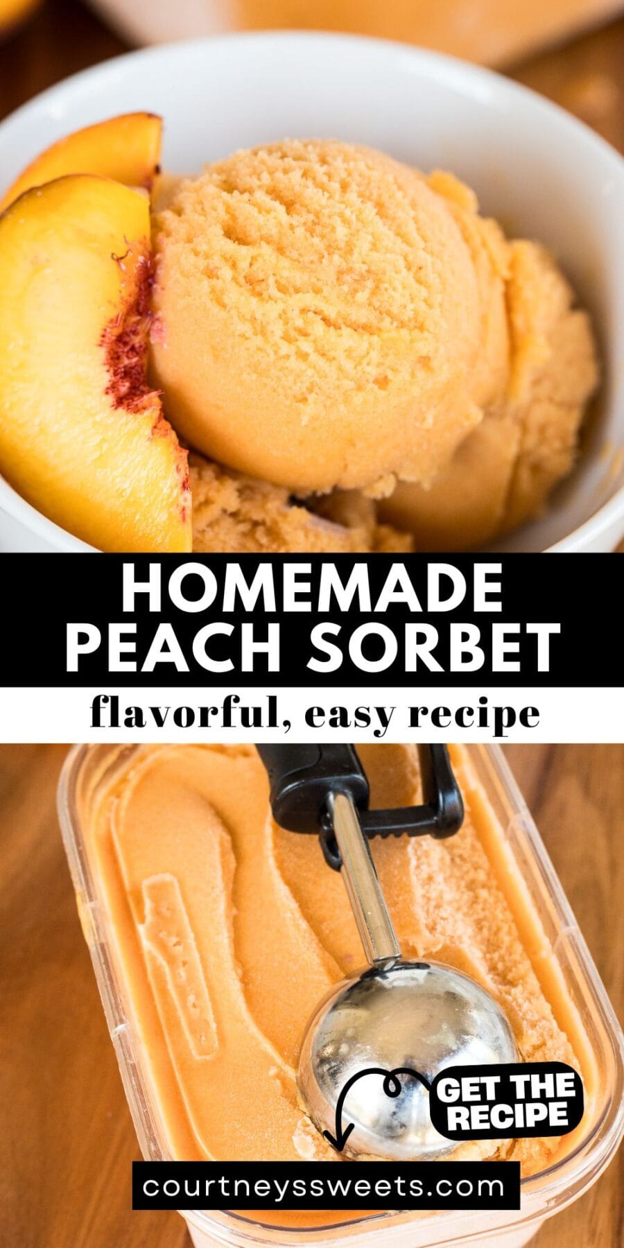 Homemade Peach Sorbet is a refreshing summer dessert made with ripe peaches, sugar, and lemon juice, churned in an ice cream maker.